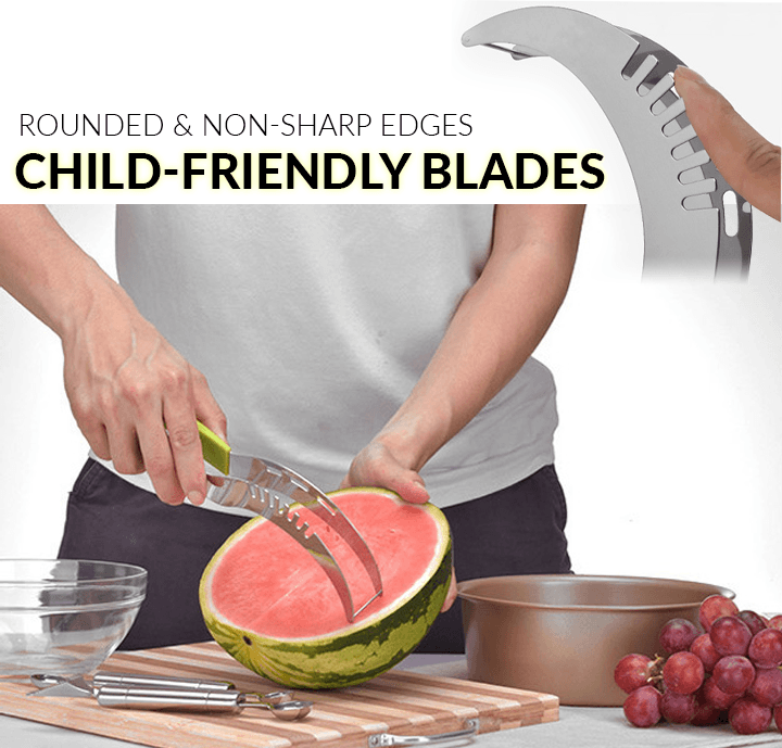 Time-saving tool of carver, slicer, and server to prepare perfect slices of watermelon with no waste - No Hassle & Mess :