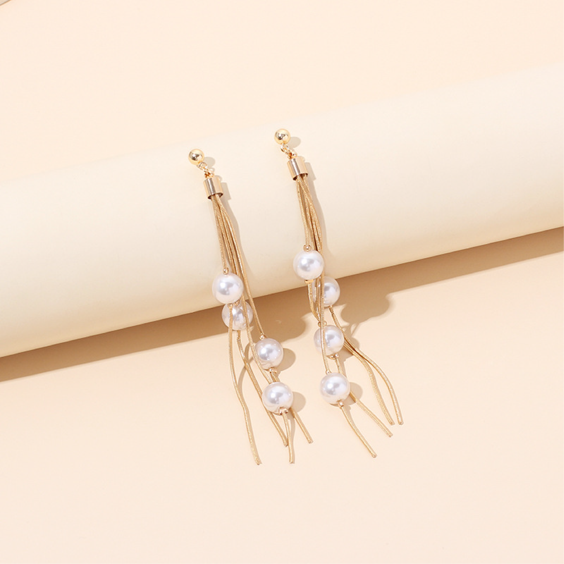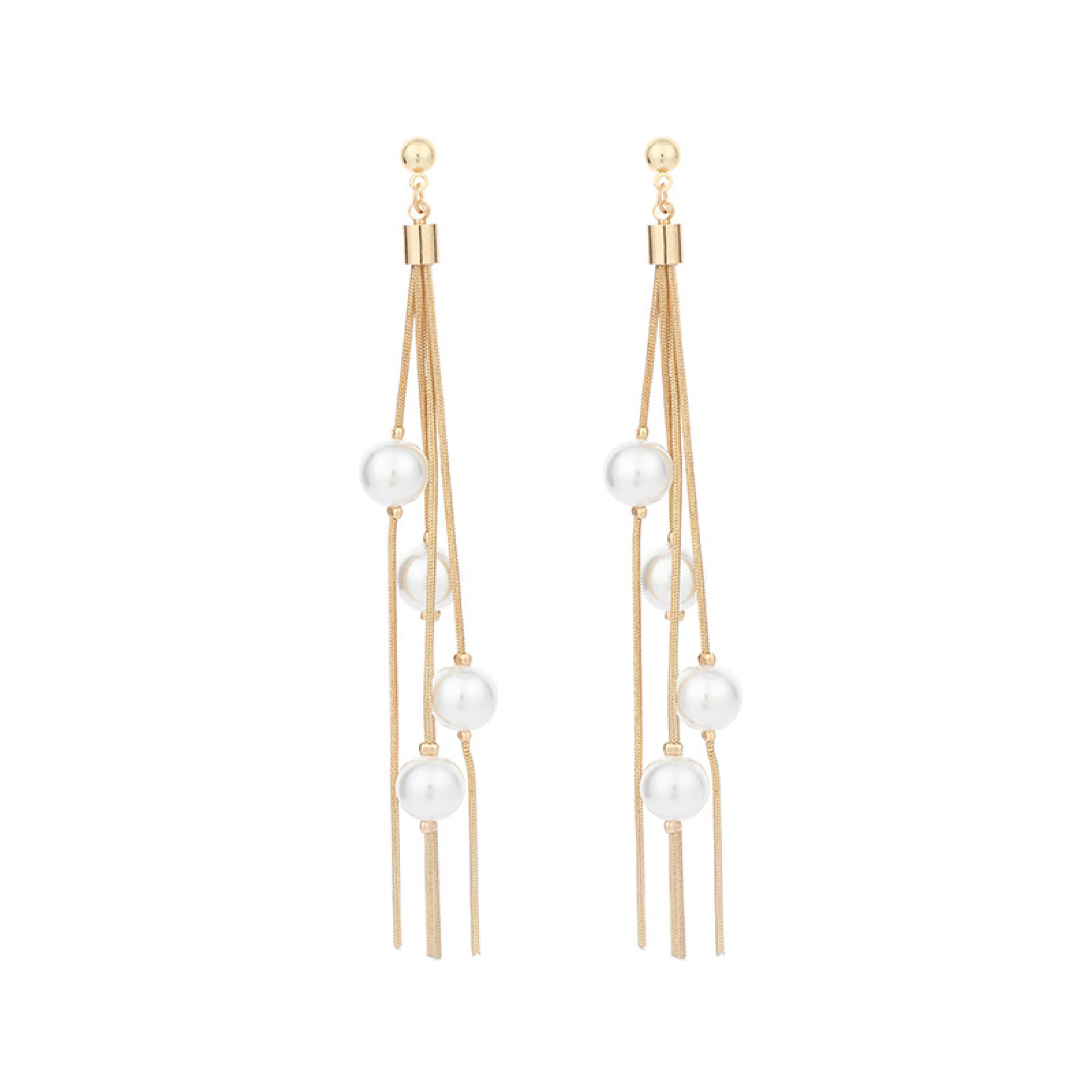 Diese goldenen Perlenohrringe mit Quaste sind sehr elegant. Die goldfarbenen Ohrringe sind im Stil einer tropfenförmigen Quaste gestaltet und verfügen über einen schicken Perlenstecker mit Goldverzierung. Diese geschmackvollen Tropfenohrringe sind atemberaubend, baumelnd und sehr feminin. Perfekt zum Styling von Abendkleidern und anderen Anlässen.